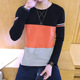 2016秋装新款男士休闲个性拼色圆领修身长袖T恤大码胖人t恤打底衫