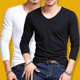 男士长袖T恤男纯色V领体恤打底衫秋季修身卫衣韩版男装上装衣服