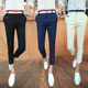 潮流英伦韩版男士休闲小脚裤 男士修身小直筒九分裤薄款黑色9分裤