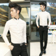 秋冬韩版男士修身长袖衬衫 潮流男式休闲小领白色纯棉衬衣寸衫男