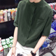夏季男士立领亚麻五分袖衬衫男韩版休闲纯色短袖上衣服中袖男装潮