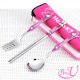 不锈钢叉子筷子勺子餐具套装 可爱卡通学生便携餐具三件套盒袋装