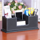 皮革多功能桌面笔筒收纳盒 办公室用品文具收纳架名片盒包邮
