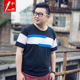 壹加大码男装胖子夏季短袖T恤衫拼接条纹肥佬宽松潮胖子加肥加大