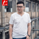 壹加大码男装短袖T恤V领棉纯色打底衫加肥加大男士半袖潮胖子宽松