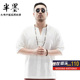 半墨大码男装中国风夏季纯色棉麻短袖T恤宽松加肥加大薄款圆领t男