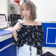 歌比姿2017新款韩版一字领印花时尚显瘦荷叶边花色雪纺衫女打底衫
