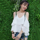 歌比姿2017夏季新款韩版性感气质宽松荷叶边吊带露肩打底雪纺衫女