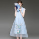 中国风刺绣连衣裙女夏2017新款女装夏季纯色短袖复古旗袍领中长裙