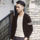 原创韩版男士条纹撞色针织衫男装夹克外套立领修身春秋毛衣男开衫