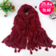 新品蕾丝拼接披肩围巾春秋保暖长款薄棉麻围巾韩国纯色丝巾女包邮