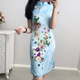 Q65698阁室2017盘扣领重磅双层真丝印花旗袍裙 需干洗