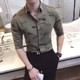 迈子2017夏季新款英伦男士青年印花衬衣韩版修身碎花衬衫