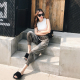 韩势 高腰阔腿裤女七分裤夏新款韩版学生修身显瘦时尚百搭休闲裤