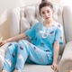 夏季女人睡衣女短袖长裤套装春秋薄款绵绸可爱人造棉大码家居服女