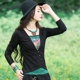 2016民族风女装上衣春秋装长袖女印花T恤纯棉修身大码显瘦打底衫