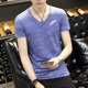 夏季男士短袖T恤V领纯色半袖修身冰丝透气体恤弹力休闲大码男装潮