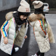 3QR儿童羽绒服女童长款过膝男童羽绒服中大童加厚大毛领卡通外套