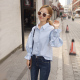 新款韩版百搭翻领衬衣韩国宽松长袖蓝色竖条纹衬衫女韩范