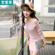 紫萱草秋冬装新品一字领露肩长袖修身针织连衣裙女打底甜美连衣裙