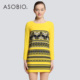 ASOBIO 秋季女装 时尚印花亮钻无袖连衣裙 4422544605