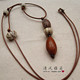 原创民族风天然血丝菩提子项链 女金丝楠木森女风长款皮绳毛衣链