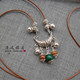 民族风项链手工挂饰挂件复古长命锁铃铛加碧绿玉春夏长款毛衣链女