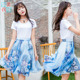 夏季碎花雪纺半身裙夏松紧腰印花半裙女中裙高腰a字裙过膝花裙子