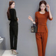 早秋新款套装女式时尚荷叶边修身长袖长裤两件套小香风OL职业套装
