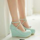 坡跟单鞋防水台厚底裸色高跟鞋浅口圆头一字扣带2017春季新款女鞋