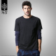 match麻吉新款T恤男长袖秋季韩版圆领t恤纯棉假两件体恤潮男T618