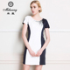 米皇正品夏新款欧美大牌短袖真丝连衣裙圆领奢华镶钻拼色桑蚕丝裙