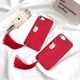 新年招财进宝猫流苏苹果6s手机壳iPhone7plus大红绒布可爱女款软