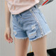 牛仔短裤女夏装显瘦热裤拼接破洞休闲裤毛边牛仔裤ulzzang学生裤