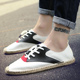 夏季潮流不系带懒人一脚蹬帆布鞋社会小伙精神潮鞋草编男鞋子板鞋
