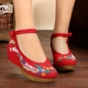族韵老北京布鞋女绣花鞋牛筋底民族风广场舞红色内增高单鞋妈妈鞋