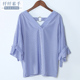 2017夏季新款韩版装宽松显瘦喇叭袖短袖条纹衬衫女V领露背衬衣
