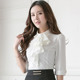 新品职业白衬衫长袖修身韩短袖条蕾丝工装衬衣雪纺小方领女装5037