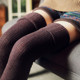 3双包邮女纯棉袜子黑色竖条纹全棉长筒堆堆袜咖啡美腿高筒过膝袜