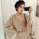 韩国代购春秋性感V领挂脖宽松喇叭袖休闲短款毛呢子上衣T恤1188