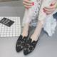 春夏季单鞋女2017透气百搭韩版平底蝴蝶结镂空尖头豆豆鞋懒人鞋