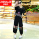 青少年夏季新款时尚网纱拼接T恤阔腿裤休闲套装少女韩版两件套潮