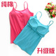 纯棉女带胸垫罩杯一体吊带背心 免文胸无钢圈瑜伽打底衫内衣