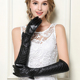 真皮手套女士冬羊皮半指手套长款过肘兔毛蕾丝蝴蝶结花边袖套臂套