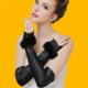 真皮长款手套女士冬季绵羊皮半指过肘加绒加厚薄款假袖子手臂袖套