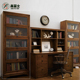 美式乡村实木书柜家用办公带门多层书架柜子收纳储物书房简约现代