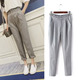 外贸原单欧美率性哈伦裤后裤脚开叉休闲西裤显瘦条纹小脚九分裤女