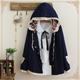 森女系春装新款可爱麋鹿印花民族风牛角扣斗篷短外套女薄外套