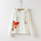 日系春新款可爱狐狸刺绣贴布连帽长袖套头卫衣宽松学生外套上衣女