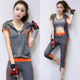 大码健身服女胖mm200斤套装瑜伽服夏季宽松跑步短袖三件套运动服